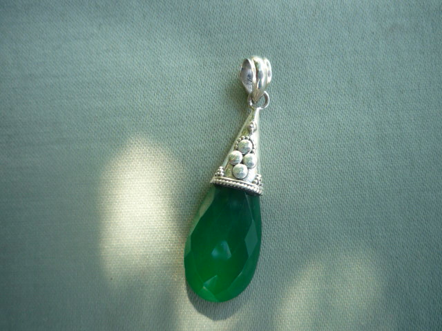 Natural faceted Green Onyx in Sterling Silver(.925) allieviates worry , tension and fear 4150